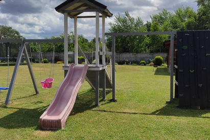 Teren jest ogrodzony. Ponadto Goście mogą korzystać z bezpłatnego parkingu, grilla, boiska do siatkówki a dzieci z przestronnego placu zabaw z trampoliną.